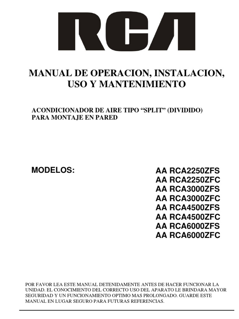 Manual RCA1 | Control remoto | Aire acondicionado