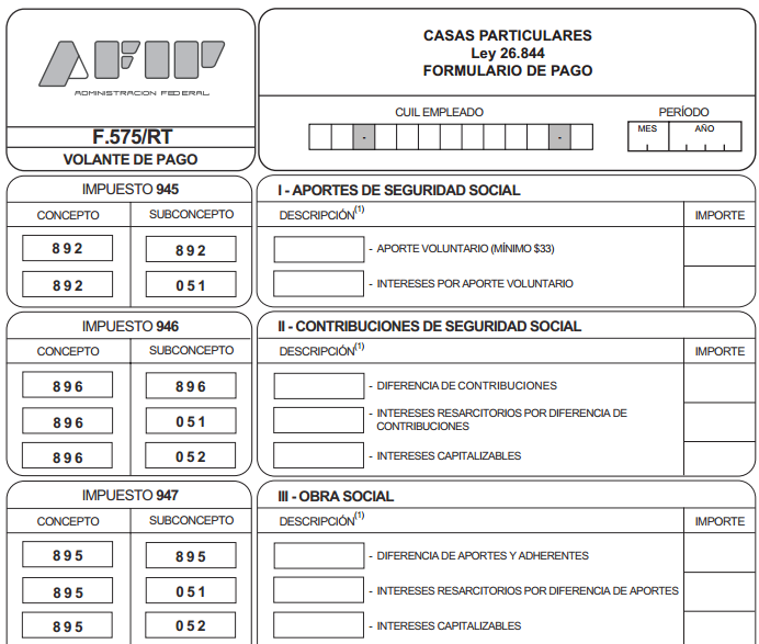 Este Volante de Pago Trabajador de casas. Por otro, se puede emitir un recibo online en la página web de Afip, a la que se ingresa con clave fiscal. Si pagás los aportes mediante un Volante electrónico de pago (VEP), no tenés que utilizar formularios.